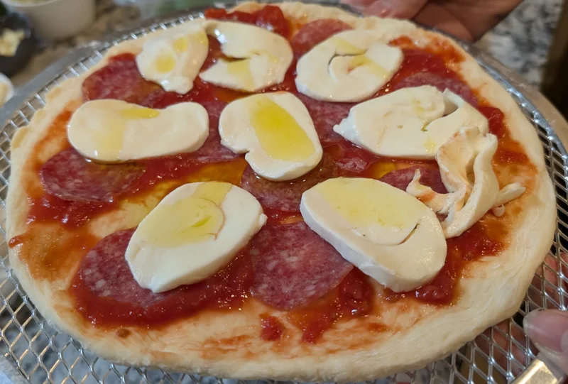 伸ばしたピザに具材を乗せていくわけですが、まずここで素人は確実にピザスクリーンがあった方がいいです。悪いことは言わないので、絶対にピザスクリーンを買ってください。
