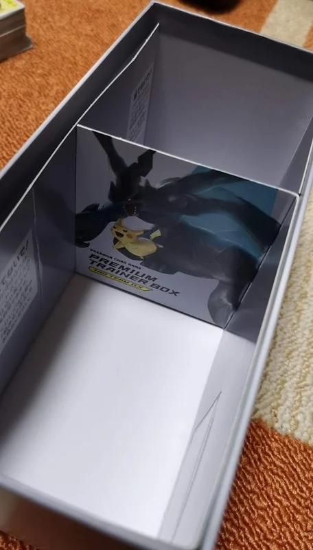ちなみに、開封後の箱はこんな感じでカードケースに使えます。仕切りの小さい方はデッキケースがピッタリ。デッキケース2つとバトル備品を持ち運ぶ、くらいなサイズ感で活用できそうです。
