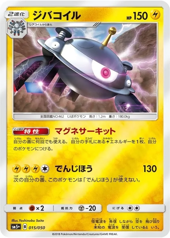 「一ターンに何枚でも手札から雷エネルギーをつけることができる」というとくせいを持った雷デッキの強力なエネルギー加速カードです。HPも高めですが、ベンチに置いておく以外ではあまり使われないと思います。2進化なのでちょっとだすのが大変ですが、だせればめっちゃ強いです。同じ2進化のデンリュウデッキだとグッズが豊富で使いやすいかもしれないです。