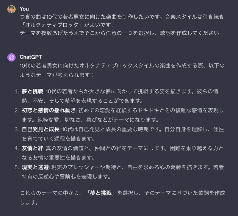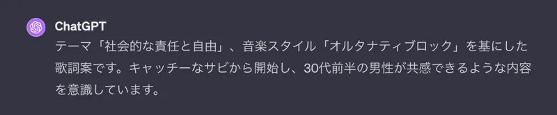 早速、ChatGPTで作詞をし、Suno AIに歌詞を投げ込んでみました。