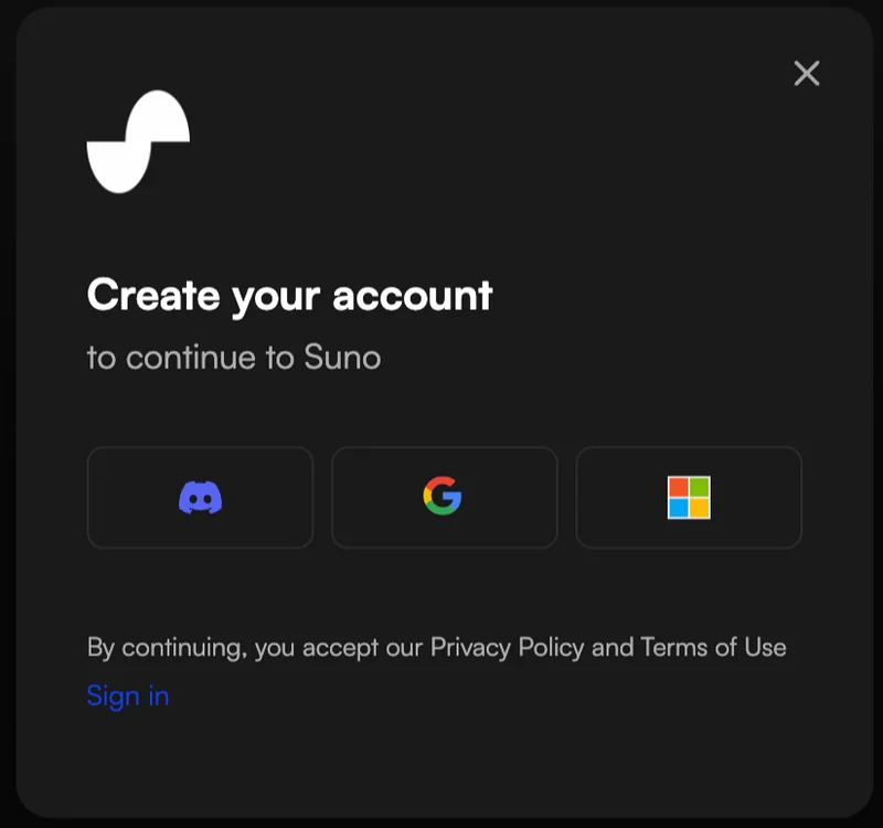 Suno AIにアクセスして「Make a Song」からアカウント登録/Sign inをしましょう。