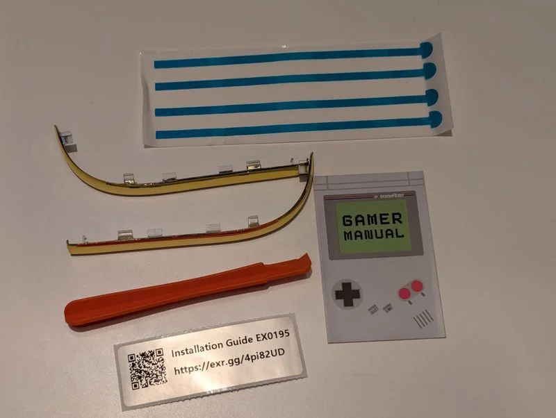 シェル全交換系のものだと深くまで分解が必要で「ネジなめた」「リボンケーブル切れた」みたいな事故をよく聞くけど、装飾ストリップは違う。基本的には「剥がして貼る」だけって感じ。